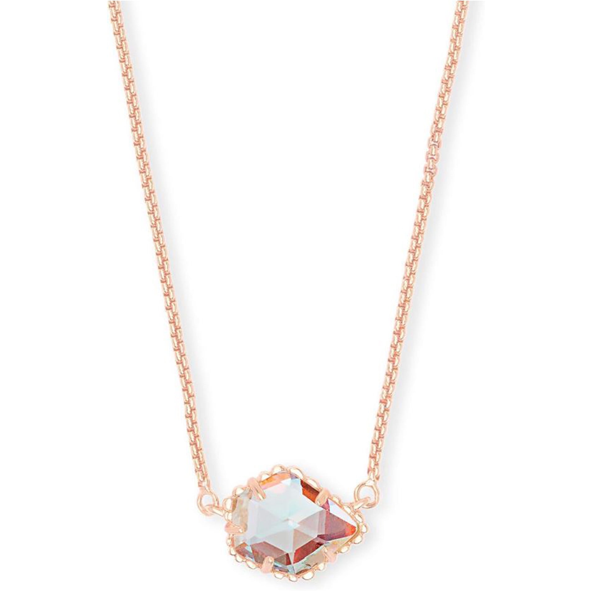 Kendra Scott Tess Pendant Necklace for Women Fashion Jewelry Rose Gold Plated 4217704130 Iridescent Dichroic Glass Very well made.
