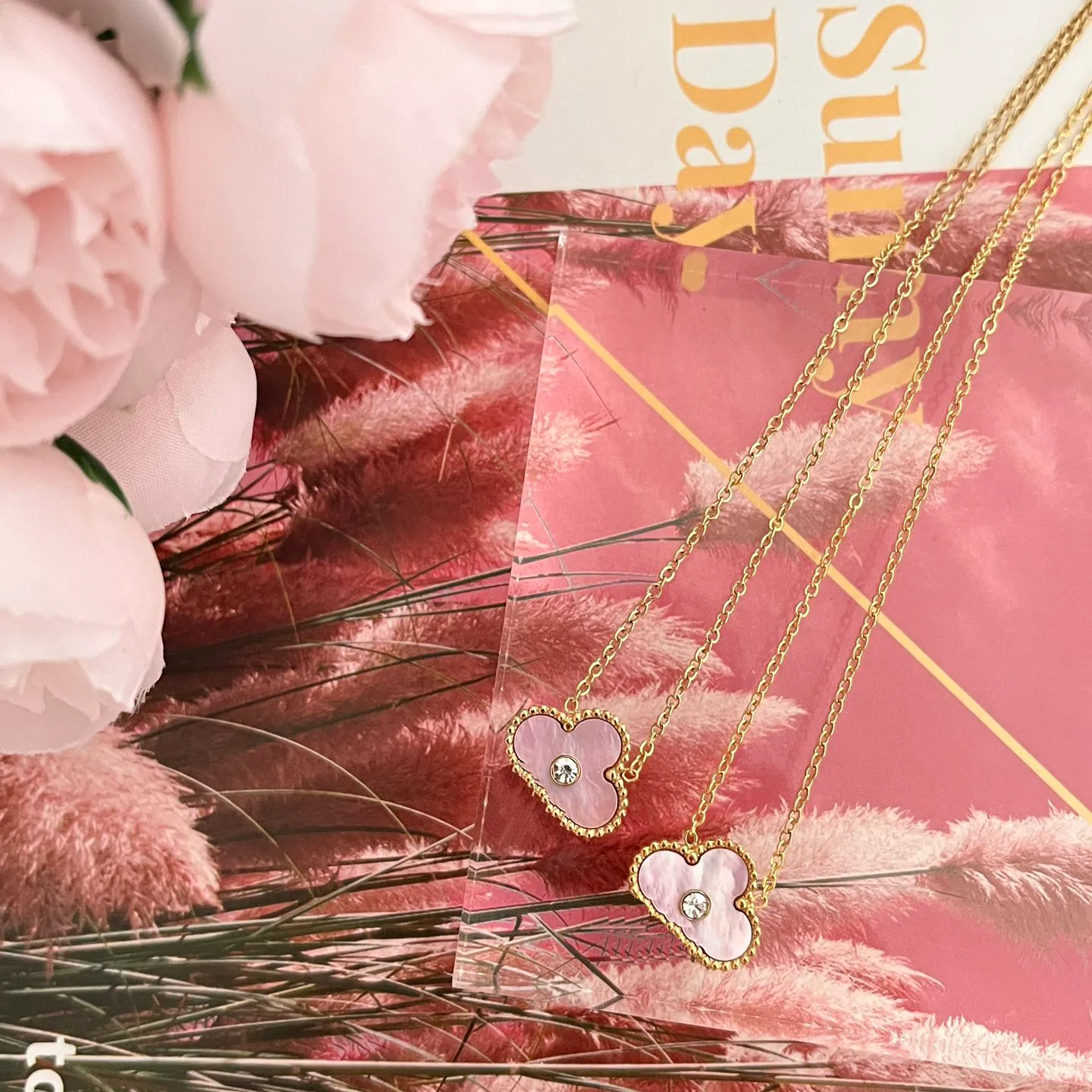 DHgate Pink Clover Necklace for Women Designer Pendant Necklace Simple Fashion Style Jewelry Long Chain Christmas Family Love Gift Necklace Jewelry Very well made.