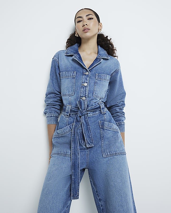 River Island Blue Broderie Belted Playsuit Lyst Canada Very well made.