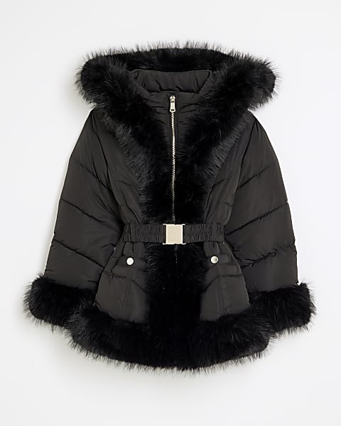 Girls Hooded Velvet Look Padded Coat Black Very well made.