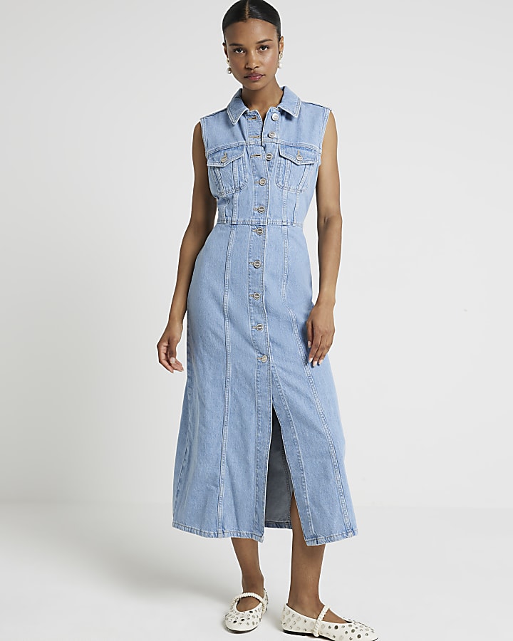 Blue denim midi shirt dress River Island Very well made.