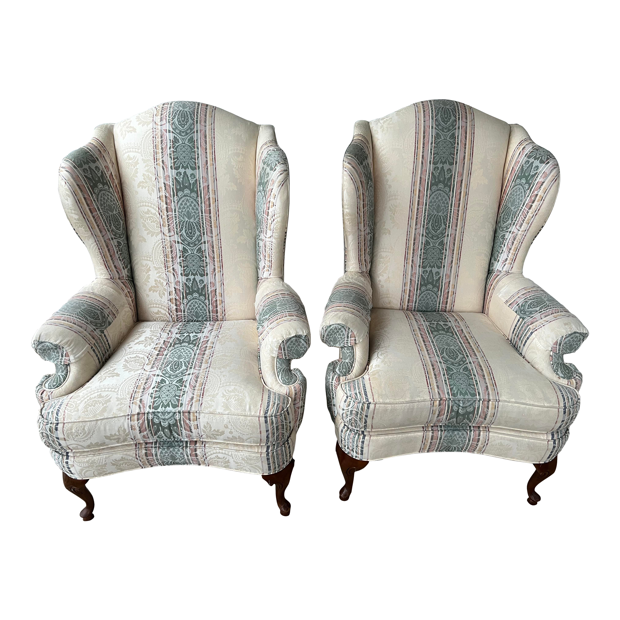 Antique Pair of Drexel Heritage Queen Anne Style Wingback Chairs Very well made.