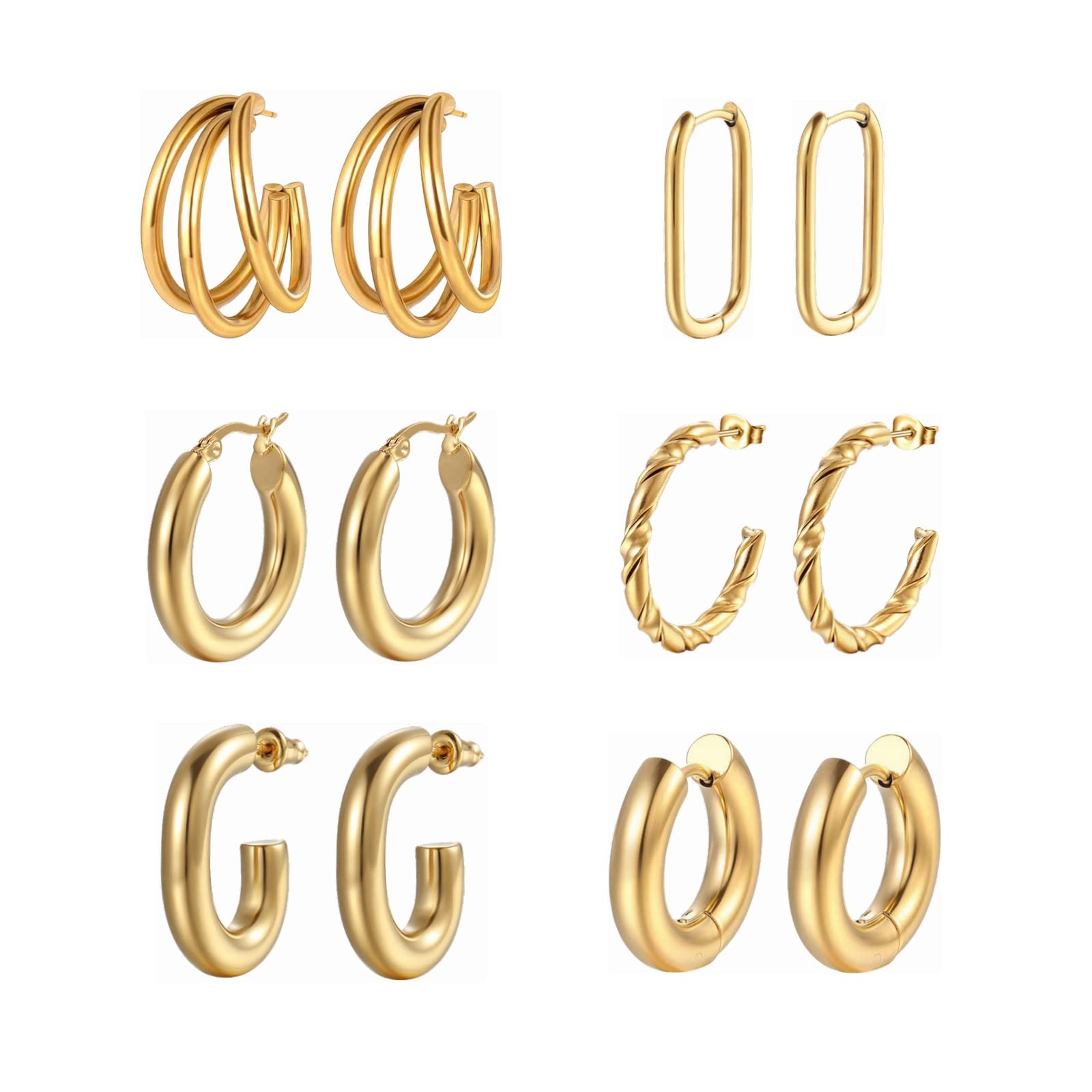 Amazon 6 Pairs Gold Hoop Earrings for Women 14K Yellow Gold Plated Curved Chunky C Hoop Earrings Friendship Birthday Jewelry Gifts gold Clothing Shoes Jewelry Very well made.