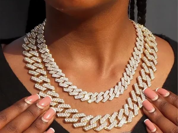 Elevate your style with the perfect layering of classic Cuban link chains featuring bold diamond encrusted designs for a sleek and luxurious statement look Very well made.