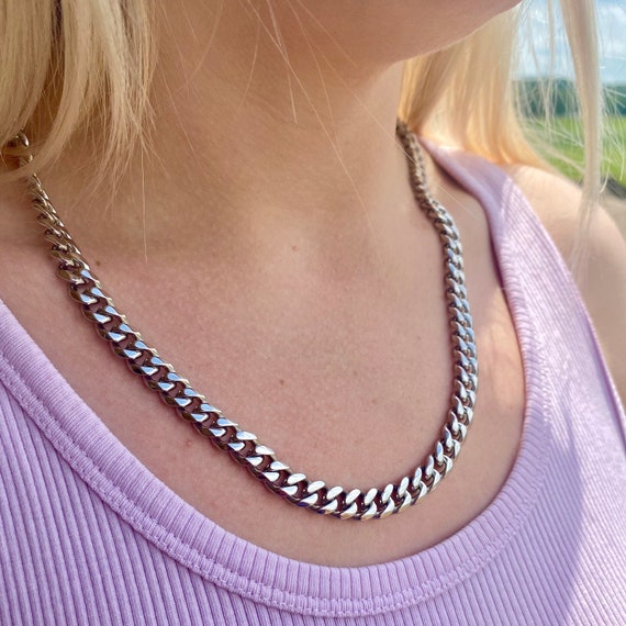Womens Necklace Chunky Single Layer Necklace Chain 8mm Thick Silver Chain Necklace Silver Cuban Chain for Her Womens Jewelry Gifts Very well made.
