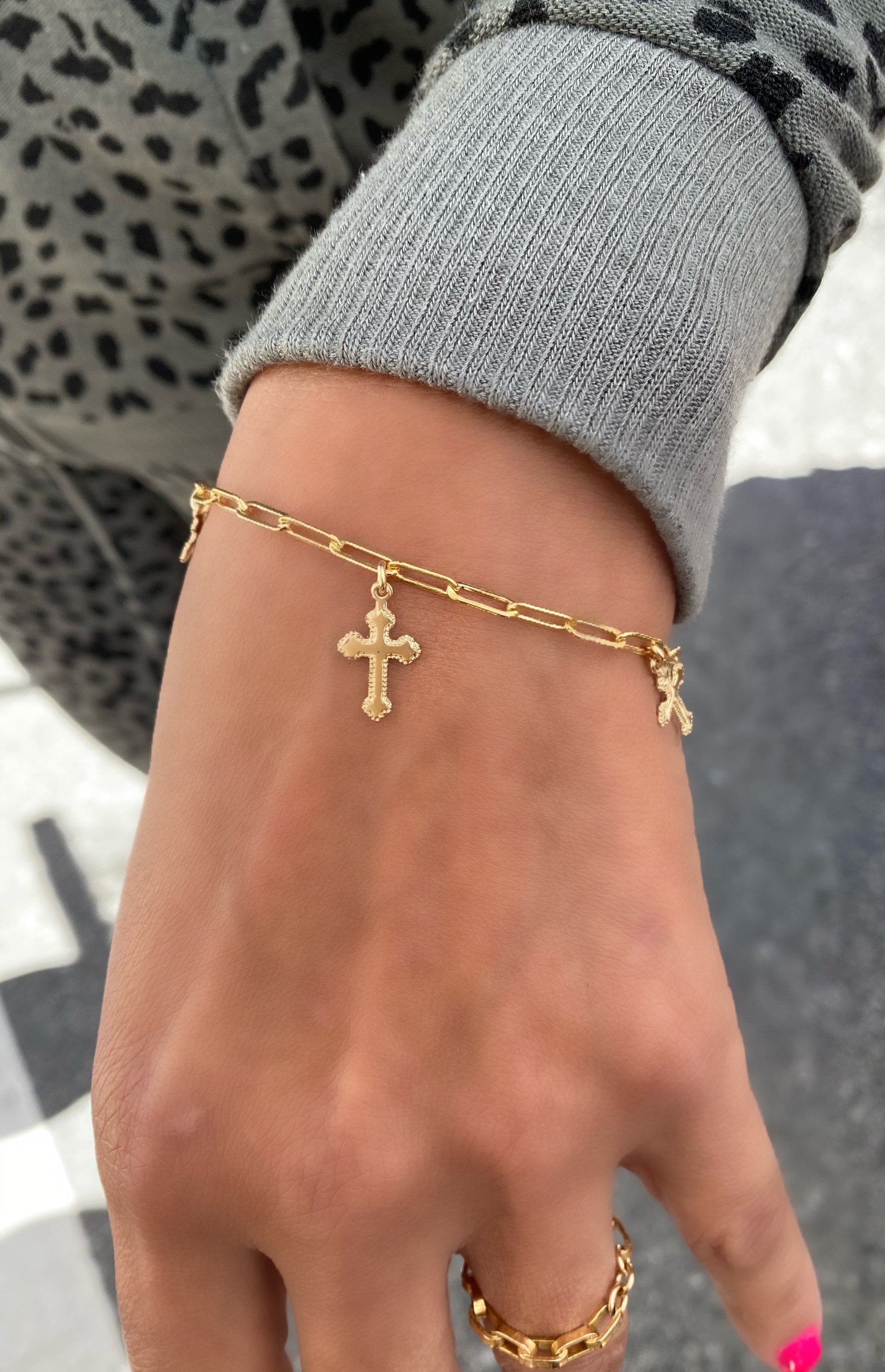 Cross Charm Bracelet Small Link Paper Clip Chain Gold Filled or Sterling Silver Minimalist Very well made.