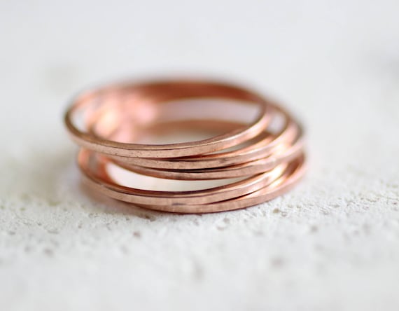 Thin Square Copper ring plain simple knuckle stacking band ring 7th anniversary jewelry sustainable gift Very well made.