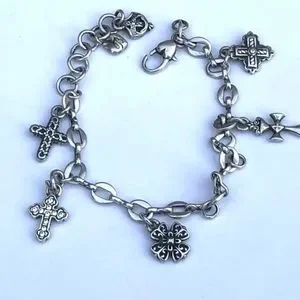 Brighton Bracelet Retired 9 Long Silver Plated Cross Charms With Cut Crystal Accents Very well made.