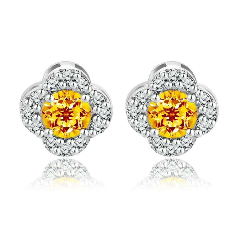 JeenMata 1 carat Beautiful Flower Halo Round Shaped Citrine November Birthstone Stud Earrings in 18K White Gold over Silver Very well made.
