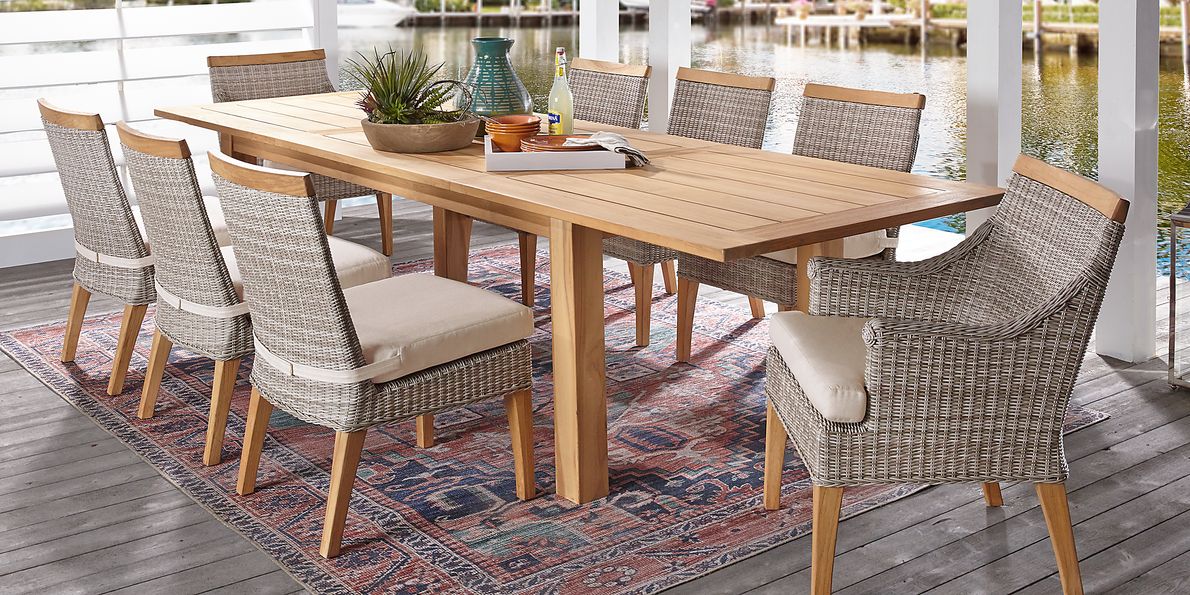 Cindy Crawford Hamptons Cove 9 Pc Natural Light Wood Teak Outdoor Very well made.