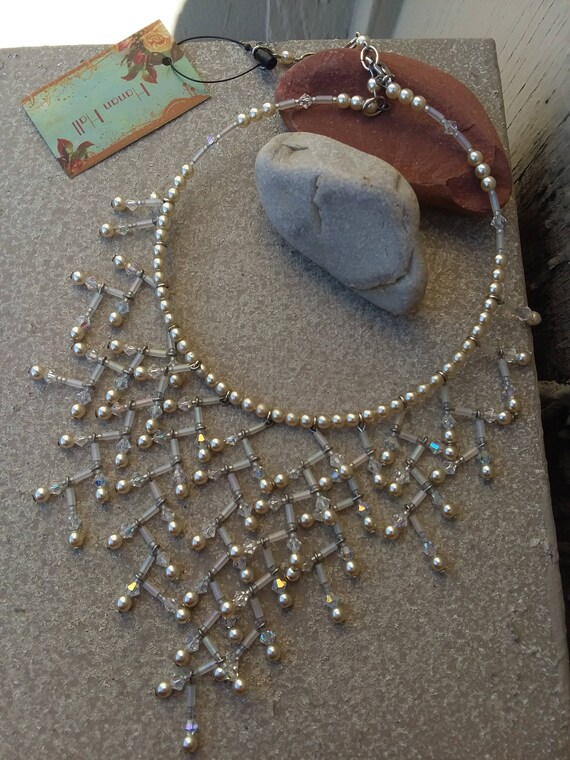 Cream Ivory Pearl Swarovski Austrian Crystal AB Coraling Fringe Choker Necklace Tropical Beach Wedding Bride Bridal Ocean Jewelry Dramatic Etsy Very well made.