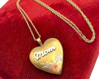 Vintage 14K Gold Filled Mom Heart Locket Necklace GF Hallmark PPC Princess Pride Creations Photo Pendant Etched Pink Floral Flower Very well made.