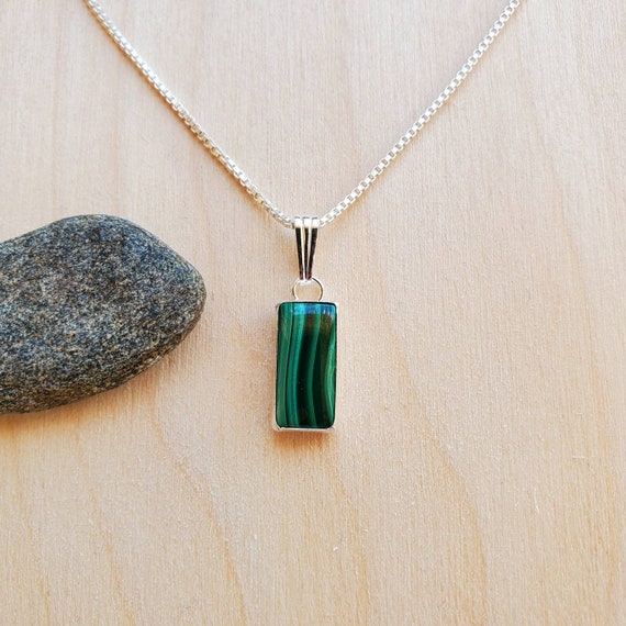 925forher Long Rectangle Malachite Necklace Pendant With Silver Box Chain Necklace 16 Sterling Silver Malachite Necklace Simple Necklace Etsy Very well made.