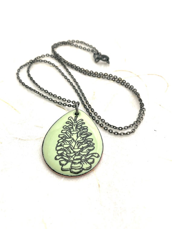 Pine Cone Necklace Lichen Green Enamel Conifer Cone Pendant Green Necklace Womens Necklace Gift for Her Handmade Necklace Etsy Very well made.