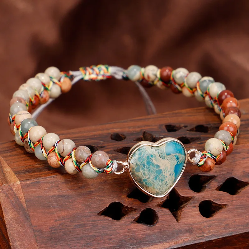 Natural Turquoise Gemstone Healing Passion Heart Shaped Bracelet Very well made.
