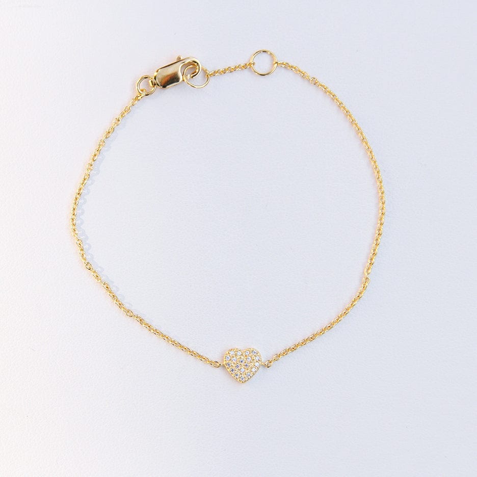 Diamond Station and Heart Bracelet in 14k Yellow Gold 1 4 ct. tw Very well made.