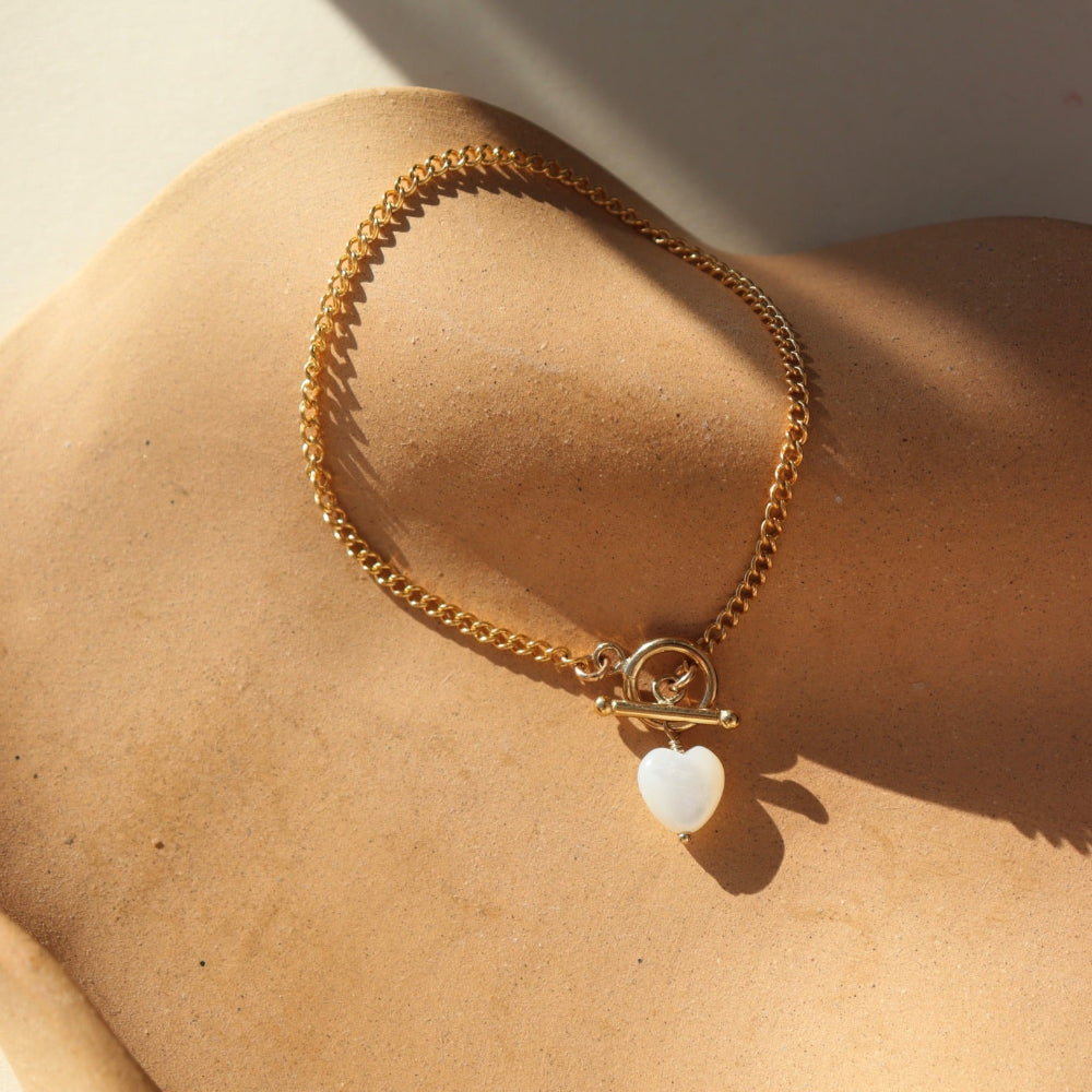 Toggle Bracelet with Heart Charm in 14k Yellow Gold Very well made.