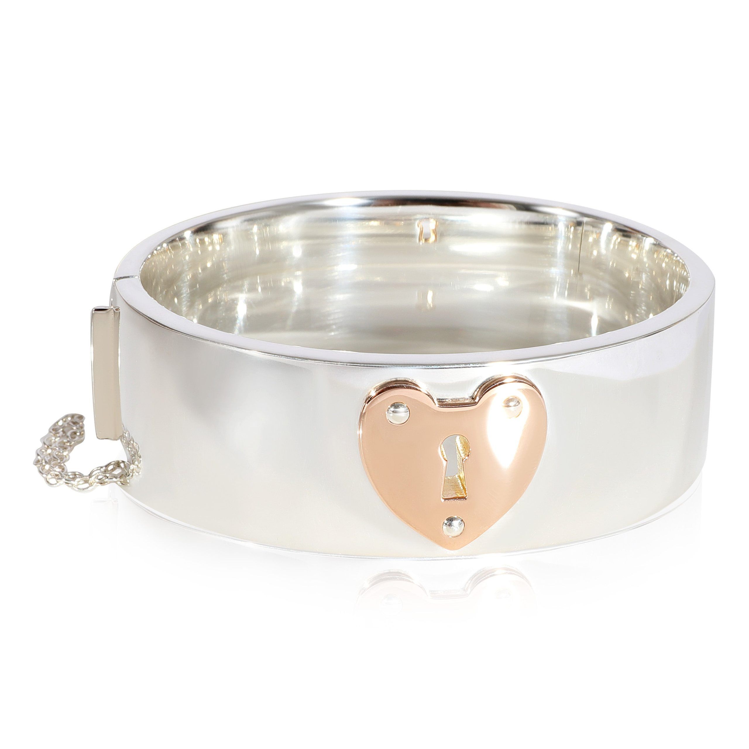 Excellent Preloved Tiffany Co. Mini Heart Lock Rose Gold Silver Bracelet 7 Very well made.