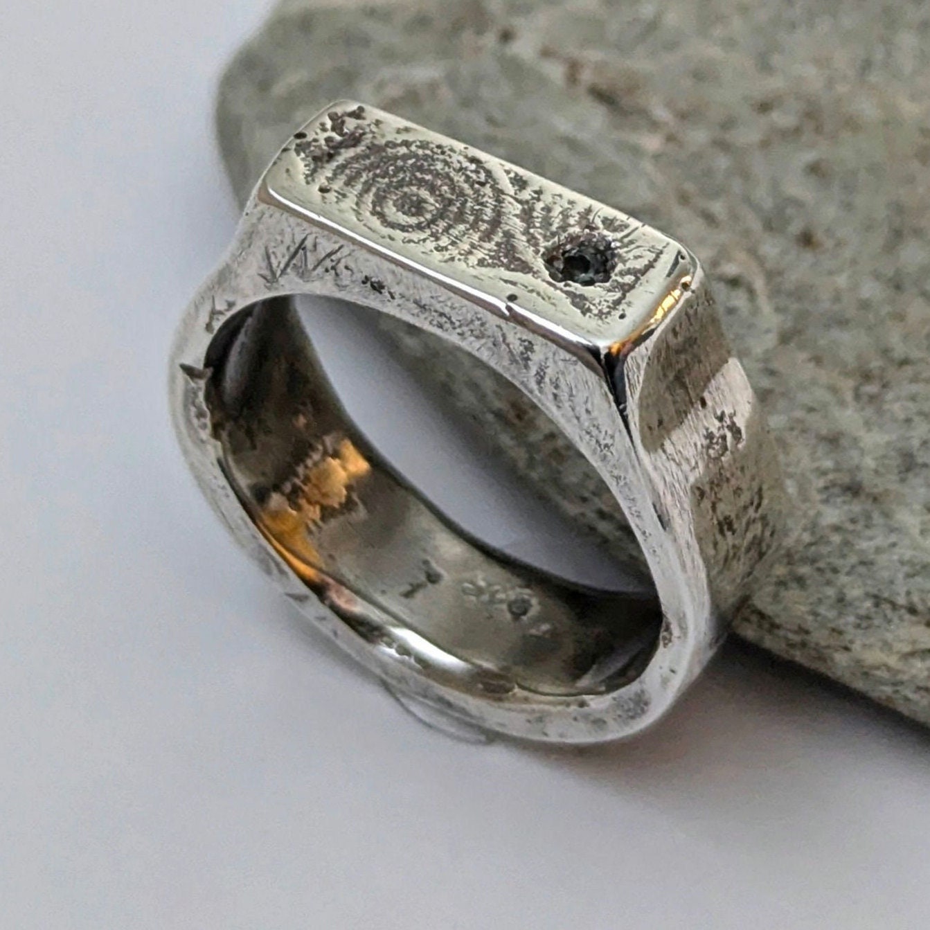 Sandcast signet ring green tourmaline ring rustic ring unique wedding band molten metal cast ring natural texture unisex size AU U Very well made.