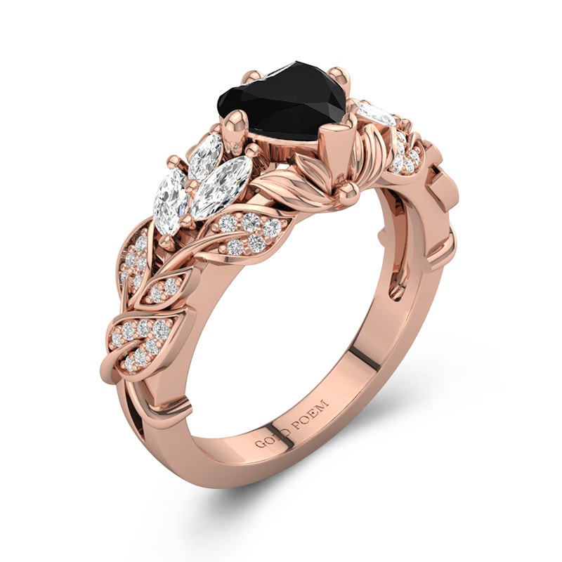 I Want You Promise Ring 1.5 ct Round Cut Diamond and Black Roses Gothic Ring 3 15 Custom Size 14K White Gold Black Clear Moissanite Very well made.