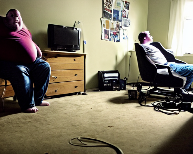 prompthunt dirty room depression scene very fat man in a gamer Very well made.