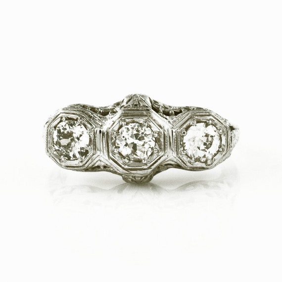 85 Vintage Art Deco Three Stone Engagement Ring Filigree Jewelers Very well made.