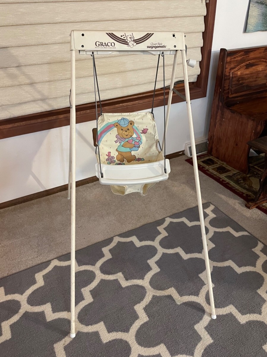 Vintage Bear Graco Swyngomatic Baby Swing Tray wind up crank quiet ride bear euc eBay Very well made.