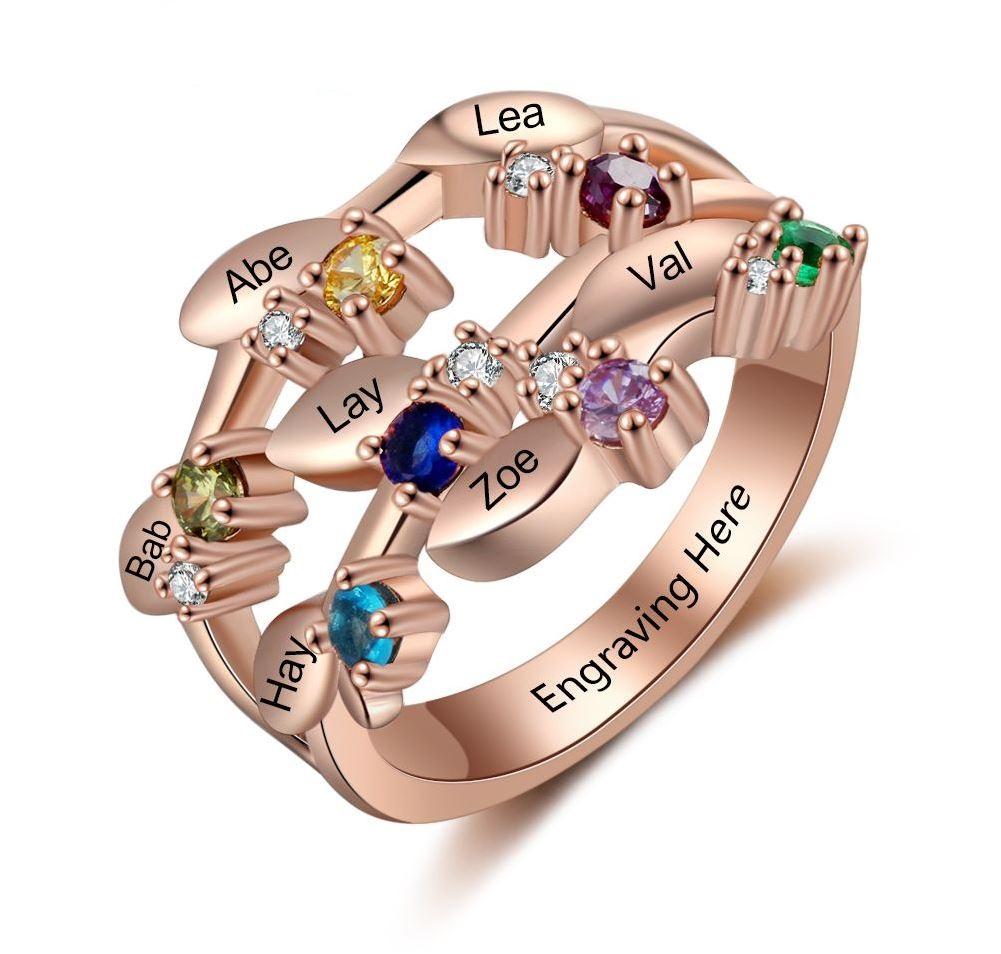 Personalized Mother s Ring Rose Gold 7 Birthstones 7 Names Think Engraved Very well made.