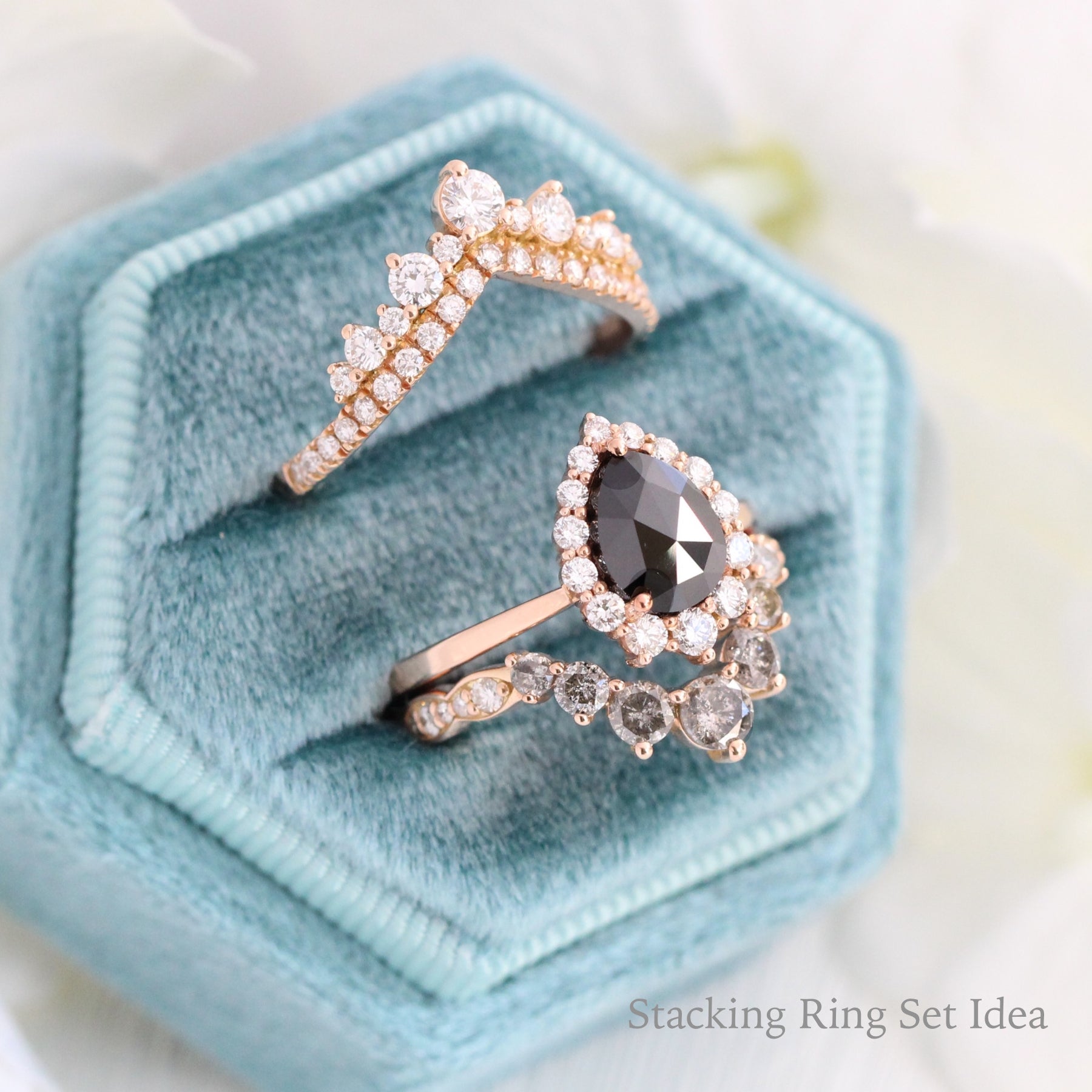 Non Traditional Pear Cut Salt And Pepper Diamond Engagement Ring Set 2 StarlandUS Very well made.