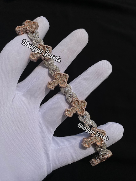 Fully Iced Out CROSS Bracelet VVS Moissanite Diamond Bracelet 925 Sterling Silver Link Bracelet for Men Customized Hip Hop Jewelry Etsy Very well made.