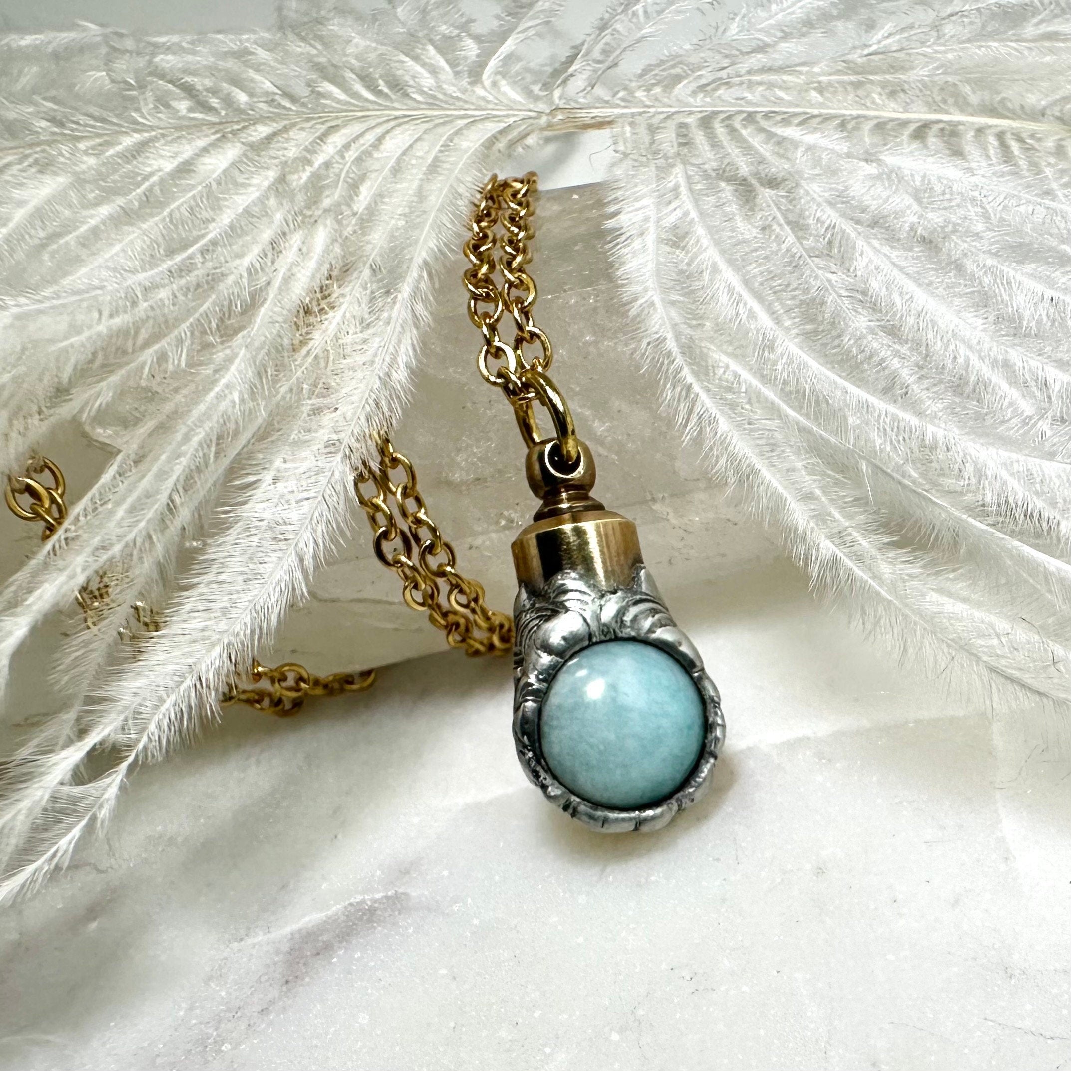 Twisted Metal Remembrance Pendant with Aquamarine Glass Ash Bead Very well made.