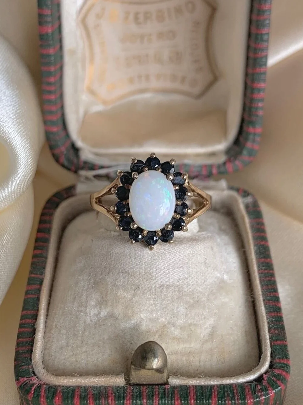 Vintage Sapphire and Opal 9ct Yellow Gold Cluster Ring Gembank1973 Very well made.