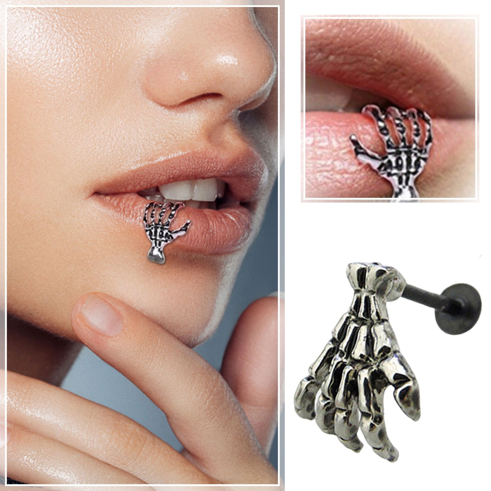 F Fityle 2 x Women s Skull Hand Lip Jewellery Punk Ribbed Lip Labret Stainless Steel Amazon Fashion Very well made.