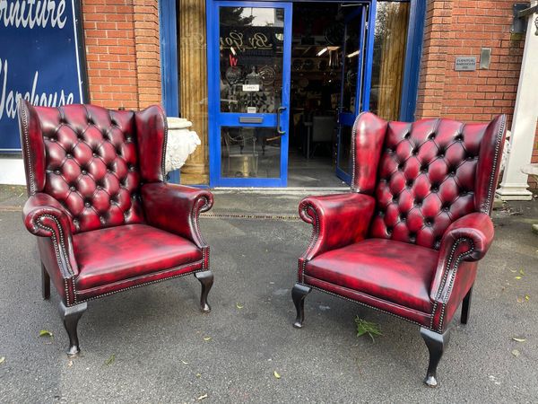 Beautiful matching pair leather queen Ann chairs for sale in Co Very well made.