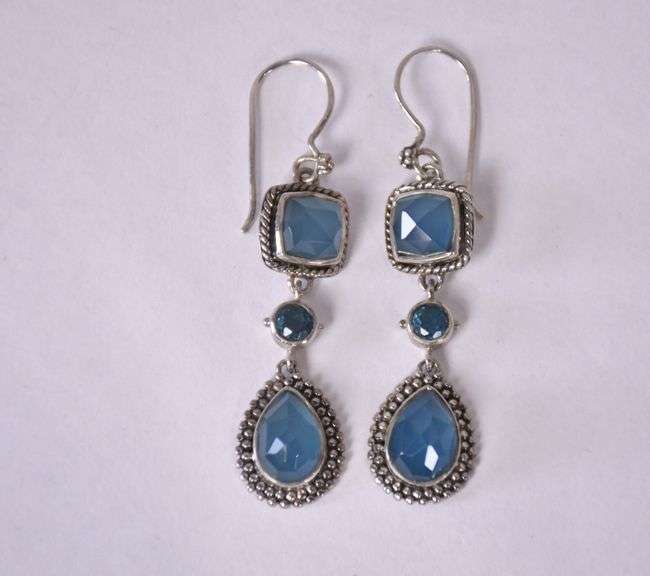 Marianna and Richard Jacobs Sajen Silver chalcedony and quartz sterling silver drop earrings 1142 029 R.H. Lee Co. Auctioneers Very well made.