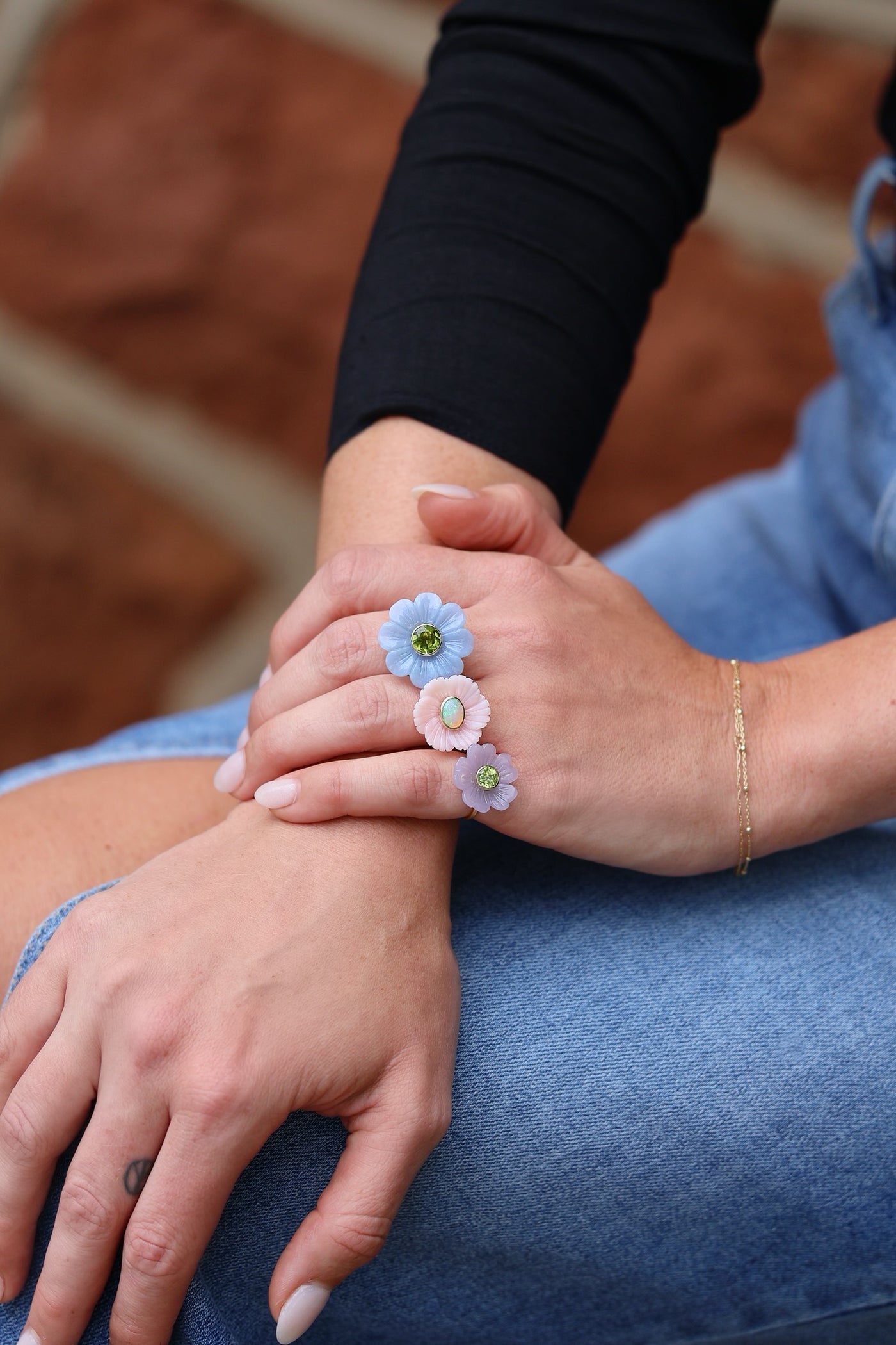 Big Daisy Blue Opal Peridot Flower Ring TinyGods Very well made.