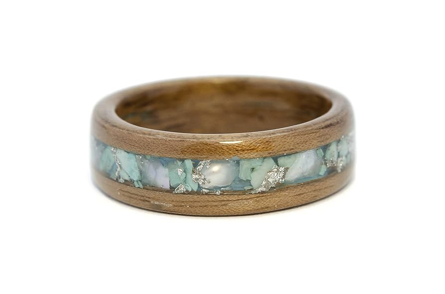 Wood Ring Walnut Bentwood Ring Wooden Turquoise Inlay Wedding Band Handmade Wood Ring Custom Men Women Wood Band Engagement Anniversary Very well made.