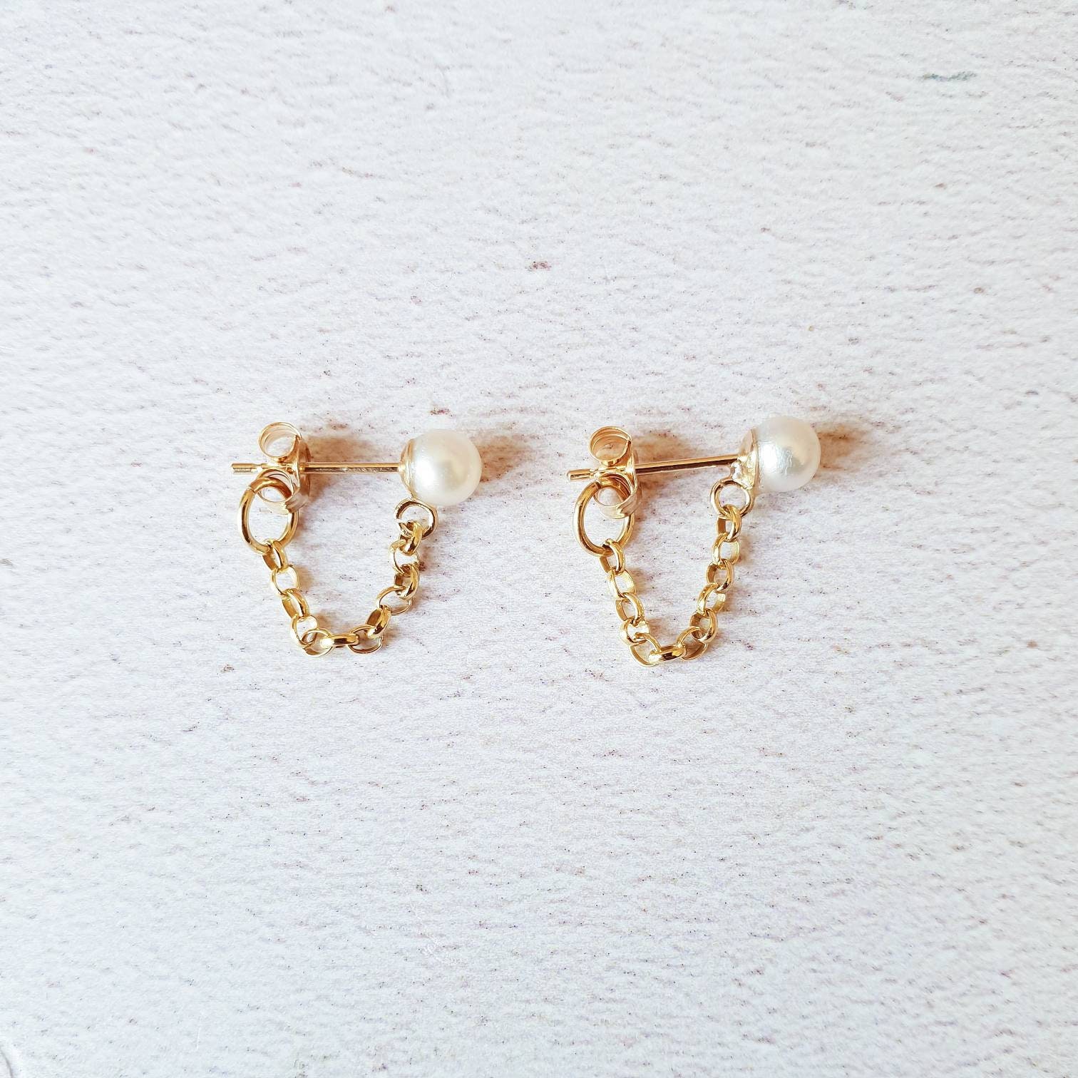 Dainty Pearl Chain Stud Earrings Caitlyn Minimalist Very well made.
