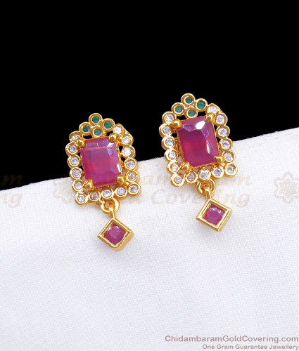 Buy Attractive Ruby Stud Earrings 1 Gram Gold Jewellery Online Very well made.