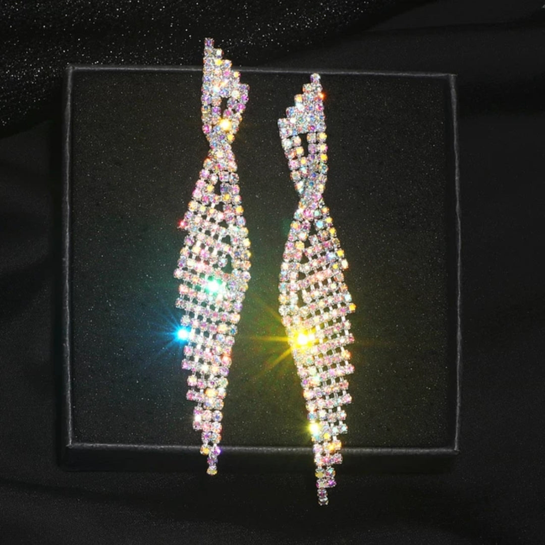 Iridescent Drop Chandelier Earrings AB Rhinestone Bridal Prom Pageant 2.6 in eBay Very well made.