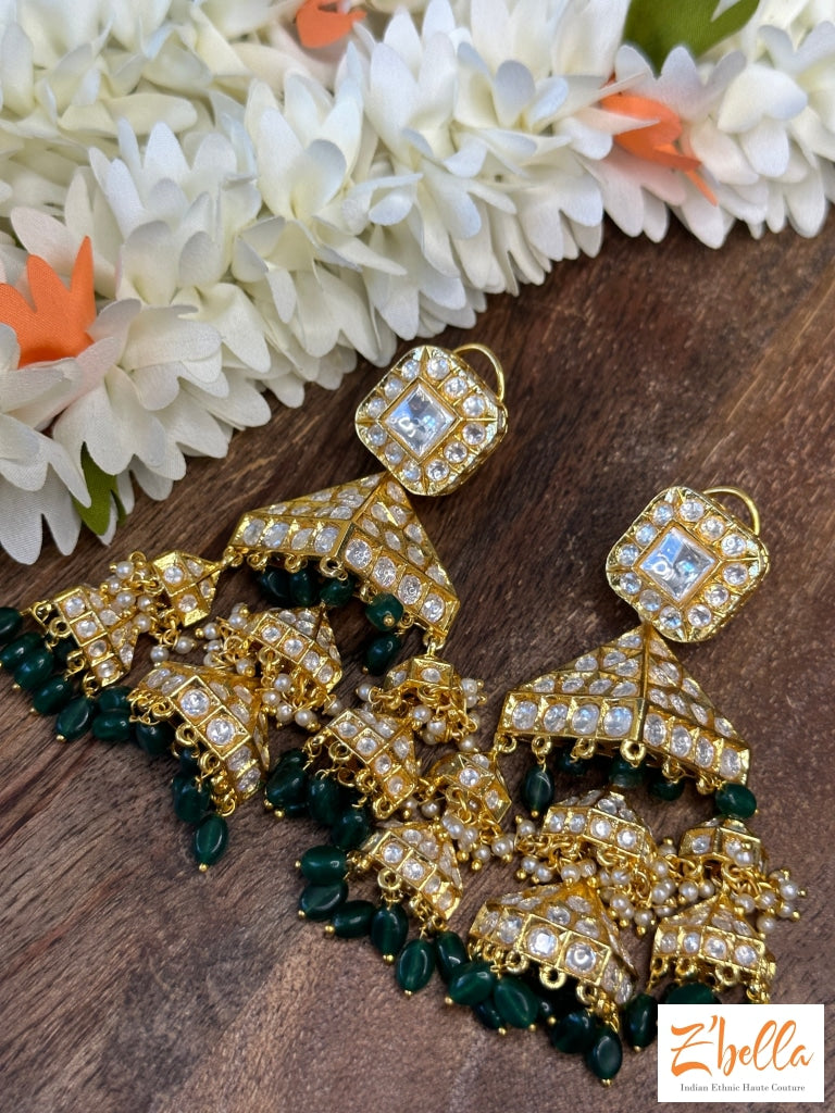 Kundan 3 tier jhumka with green beads Z Bella Couture Very well made.