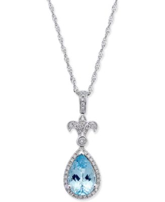 Arabella Aquamarine 1 1 4 ct. t.w. and Diamond 1 6 ct. t.w. Fleur De Lis Teardrop Pendant Necklace in 14k White Gold Macy s Very well made.