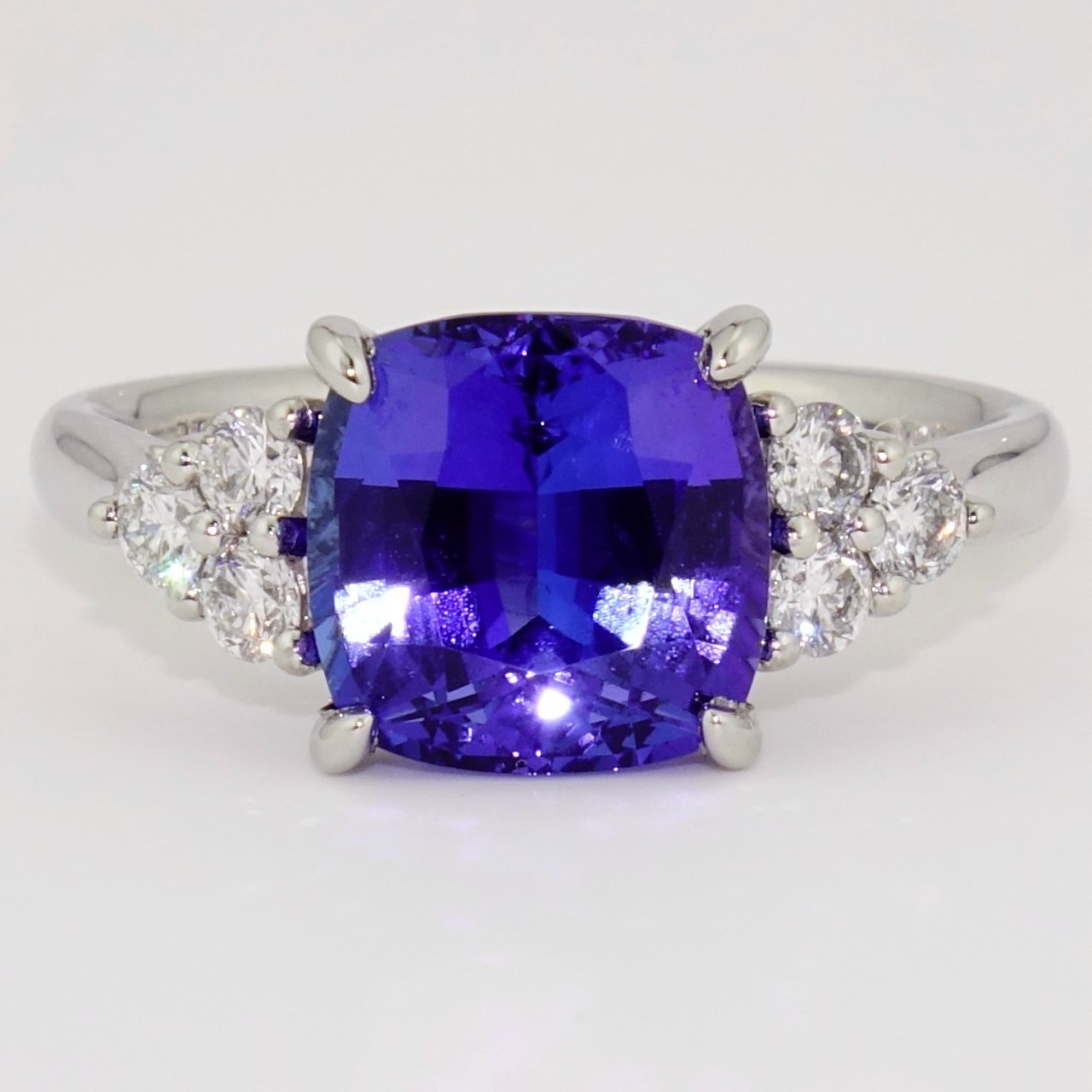 Platinum Cushion Tanzanite and Diamond Ring Very well made.
