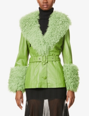 SAKS POTTS Foxy Leather Coat With Fox Fur in Forest Green size S Very well made.