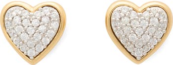 Kate Spade New York Cubic Zirconia Pave Heart Stud Earrings Clear Two Tone Very well made.