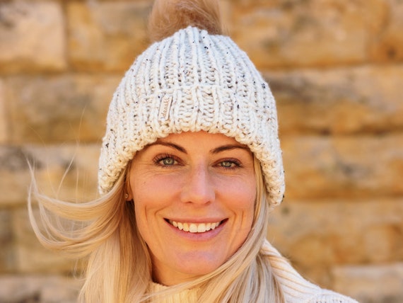 Beautiful Womens Chunky Hat Tweed Bobble Hat or Beanie With Detachable Faux Fur Bobble. Toque Hat. Slouchy Hat. Winter Hat. Etsy Very well made.