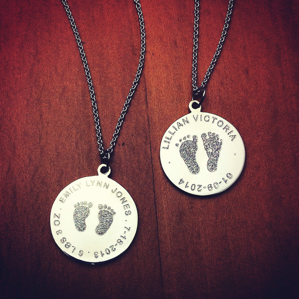Personalized Footprint Necklace Pendant Newborn Baby Shower Foot Print Gift Customized Date Letter Pendant for Women Very well made.