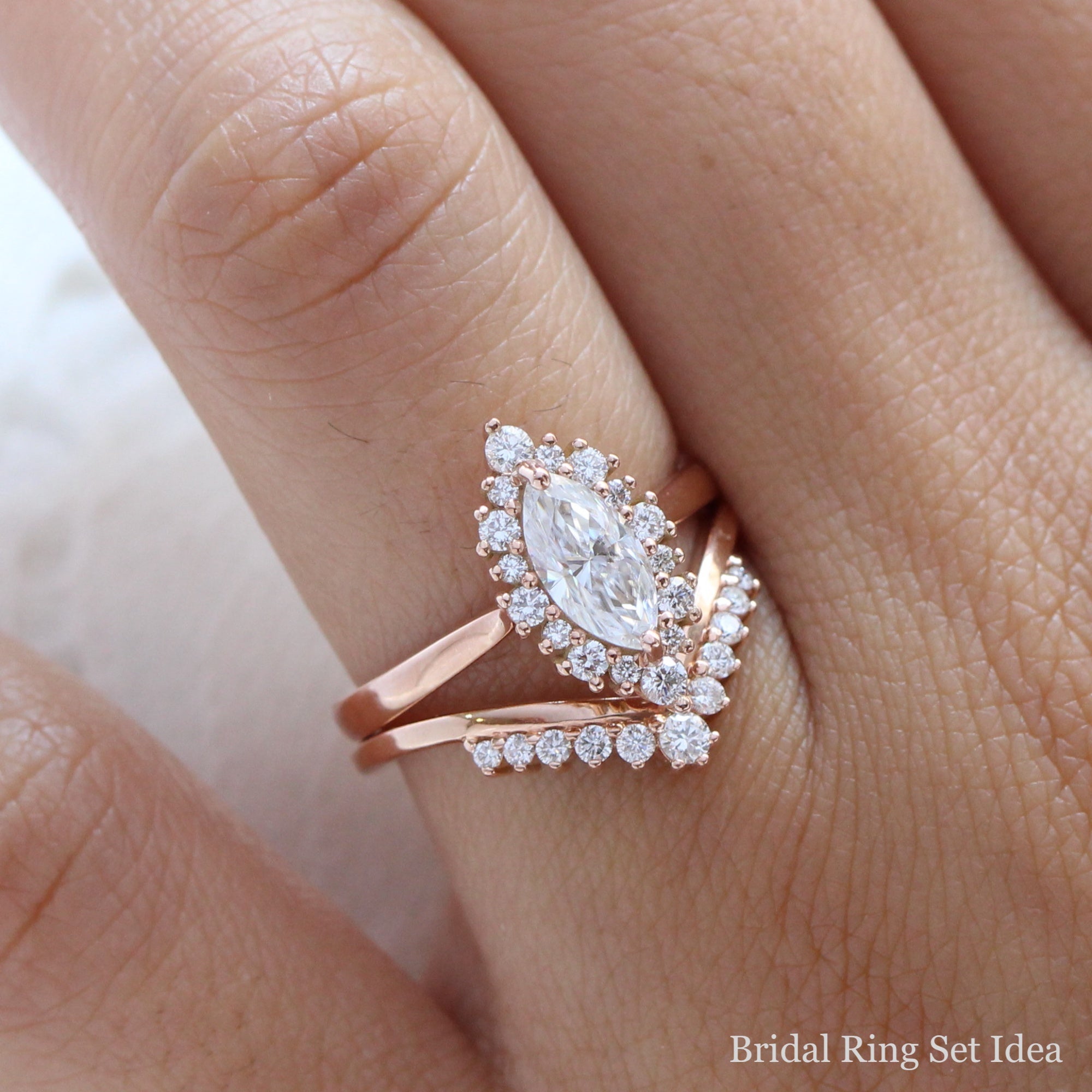 Amazon pear cut moissanite engagement ring set rose gold plated bridal wedding ring set marquise cz diamond women jewelry half eternity proposal Very well made.