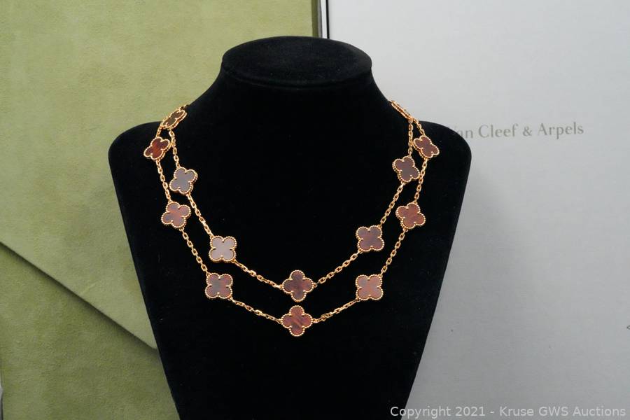 Van Cleef Arpels Alhambra 18K Letterwood Necklace Auction Kruse GWS Auctions Very well made.