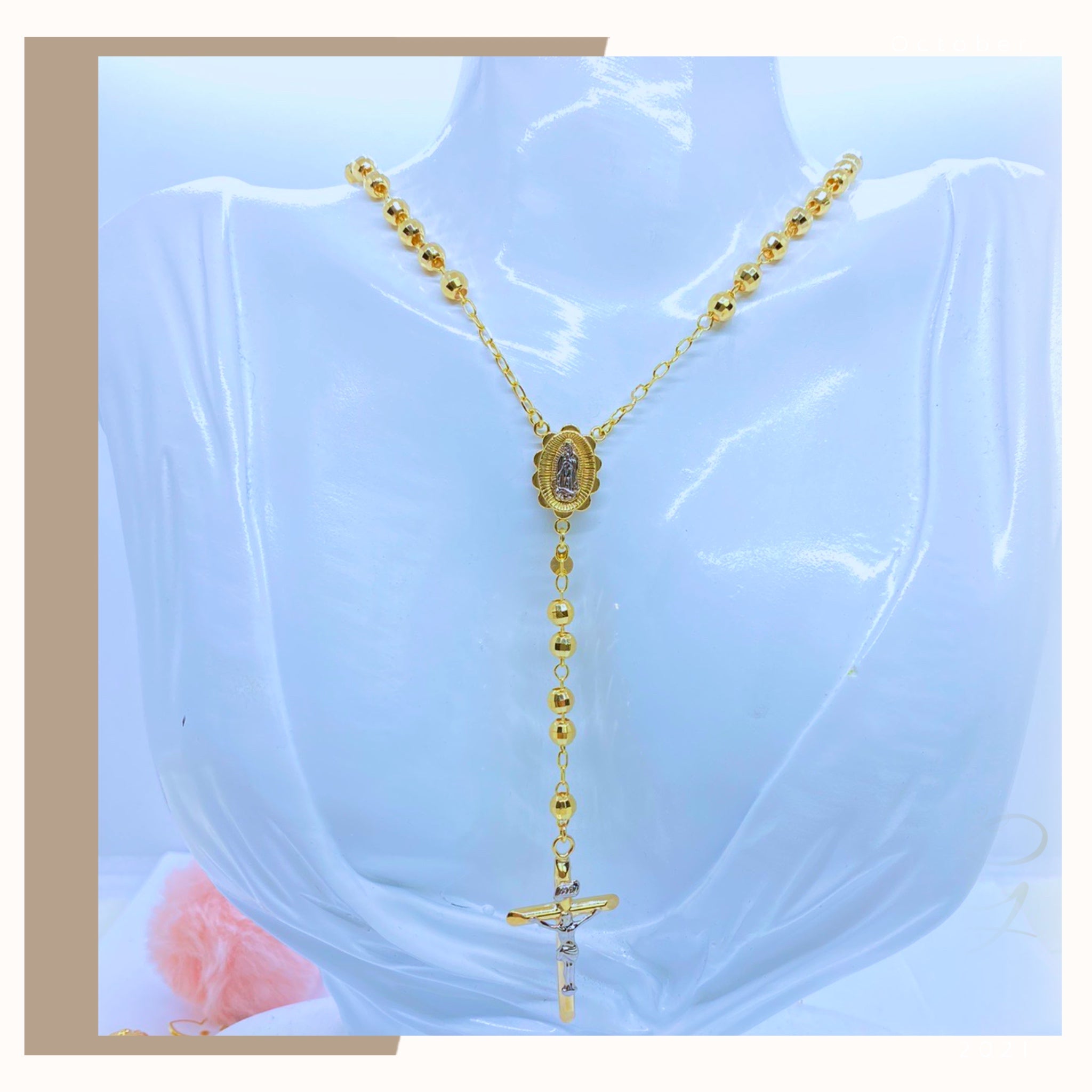 10k Solid Yellow Gold Rosary virgin Mary Jesus Cross Necklace 24 6.2 bhj Very well made.